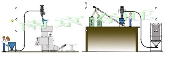 負壓輸送氣力輸送系統一般用羅茨真空泵或真空發生器為動力源,抽吸系統內的空氣,輸送管內形成低于大氣壓的負壓,進風口形成物料與氣體的兩相流,進入管道,在一定的流速下,吸送到終點的料氣分離設備,物料在重力或離心力的作用下分離出來進入料倉,氣體經羅茨真空泵或離心機排入大氣。
